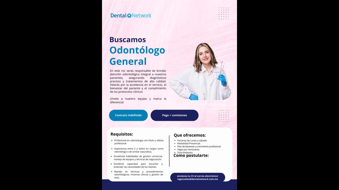 En Dental Network somos una empresa líder en el sector de salud dental con presencia en LATAM, brindamos servicios de vanguardia con la más alta calidad y profesionalismo y estamos en busca de un Odontólogo General apasionado por la salud bucal para unirse a nuestro equipo.